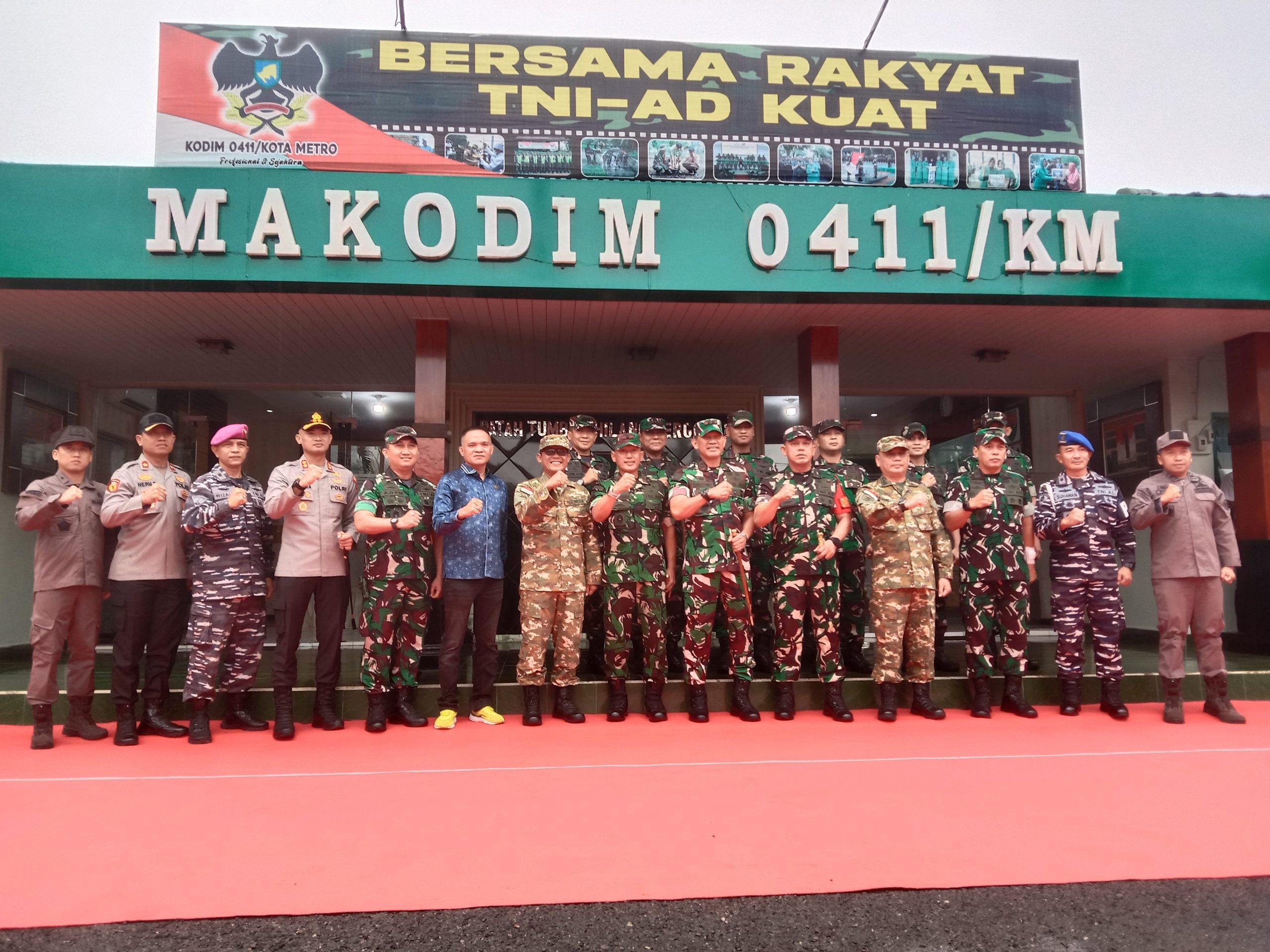 Tampak Pangdam XXI/RI Mayor Jenderal TNI Kristomei Sianturi beserta rombongan pejabat Kodam XXI/RI dan Provinsi Lampung berbaur bersama personel Kodim 0411/KM dan warga masyarakat binaan jajaran koramil.